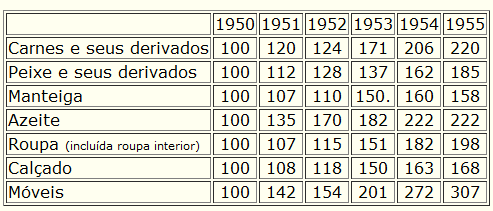 Citarei alguns dados que testemunham o aumento da venda de mercadorias à população pelo comércio estatal e cooperativo (percentagem em relação a 1950):