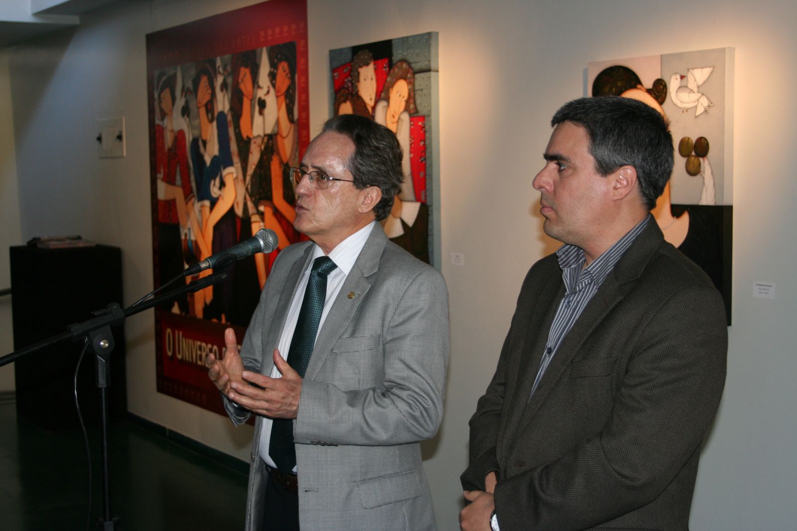 O presidente do INMA, Aldo Arantes, e o diretor da Fundação Maurício Grabois, Fábio Palácio, na solenidade de lançamento do livro Mudanças Climáticas – Fundamentos científicos e políticos, no hall da Câmara dos Deputados (DF).