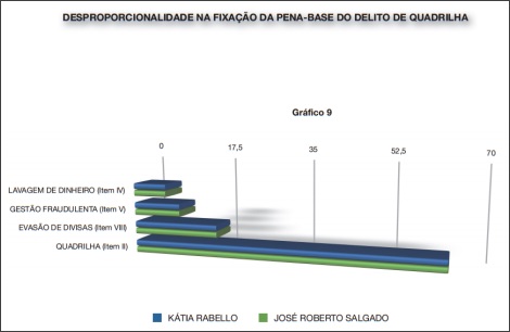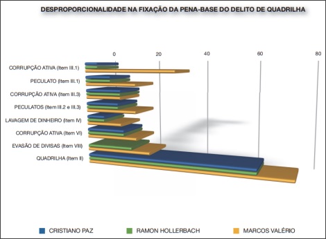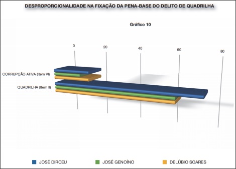 Enquanto as penas para o crime de corrupção ativa foram majoradas de 15% a 20%, as aplicadas ao de formação de quadrilha variaram de 63% (caso do ex-presidente do PT, José Genoino) a 75% (no do ex-ministro José Dirceu). “É claro que isso ocorreu para superar a prescrição e impor regime fechado a determinados réus. (…) É uma desproporção inaceitável”, denunciou Lewandowski.