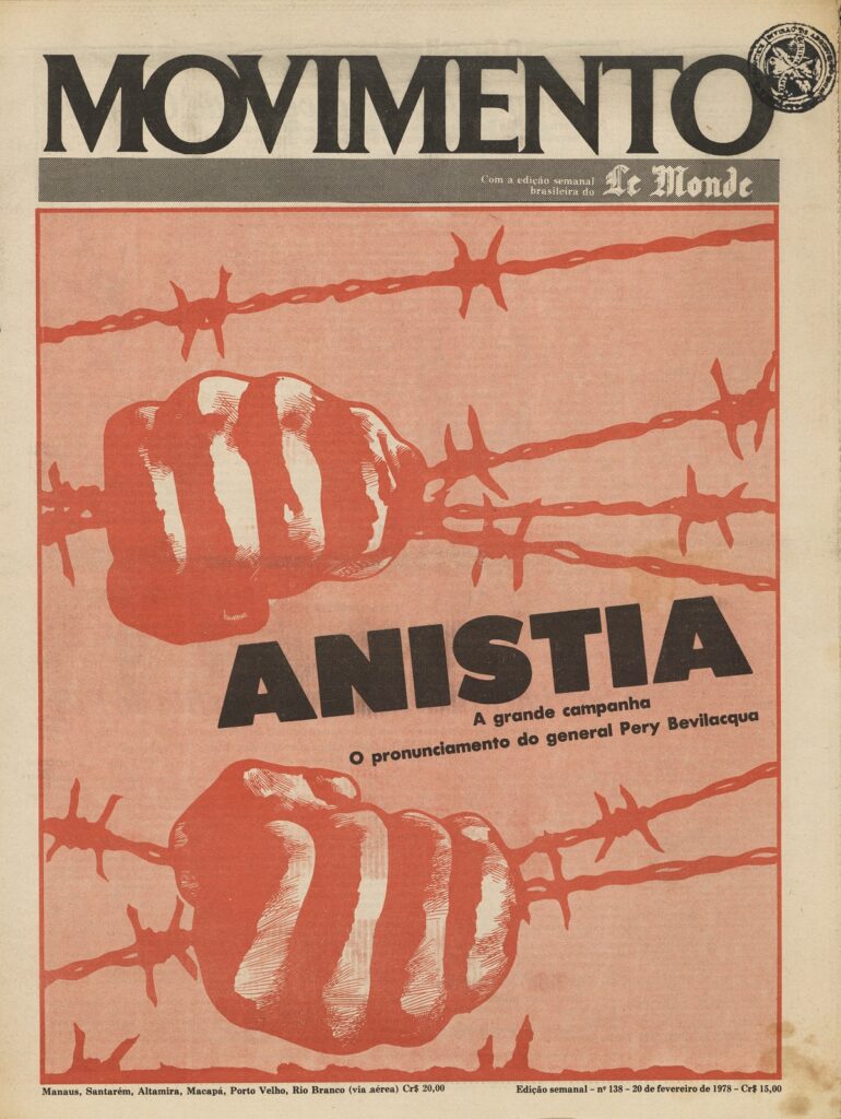 - Capa do Jornal Movimento, edição nº 138, de 20 de fevereiro de 1978, dedicada à campanha pela anistia. Crédito: Acervo do Arquivo Público do Estado de São Paulo