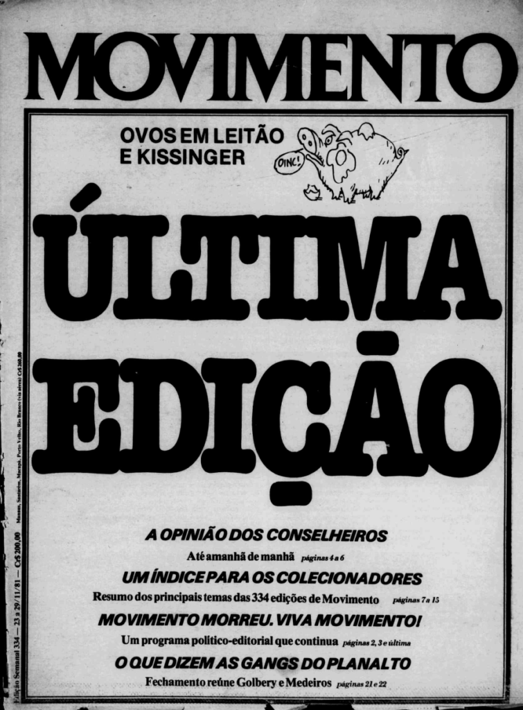 - Capa da edição nº 334, de 1981 — a última do Jornal Movimento. Crédito: Acervo da Hemeroteca Digital Brasileira