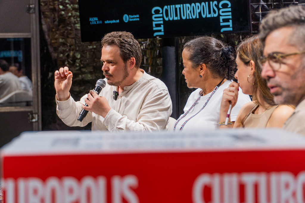 O presidente da Fundação Casa de Rui Barbosa, Alexandre Santini, fala durante atividade do Culturopolis, evento paralelo à Mondiacult 2025, em Barcelona. Foto: Luciele Oliveira / MinC – 1º/10/2025