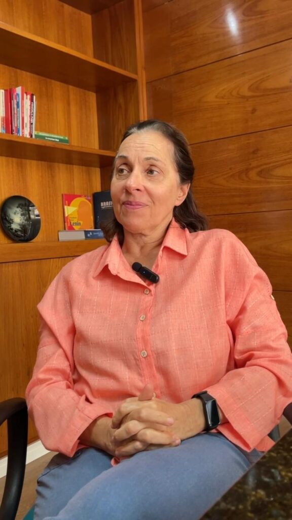 A vice-presidenta do PCdoB recebeu a equipe do Portal Grabois em seu gabinete, na sede do Partido, em São Paulo (SP), em 19/11/2025. Crédito: Reprodução/FMG
