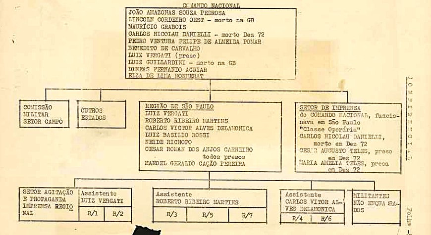 Organograma do PCdoB montado pelos órgãos repressivos, datado provavelmente de 1973. Foto: Acervo / CDM